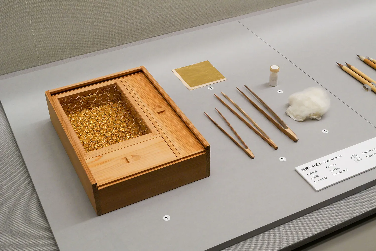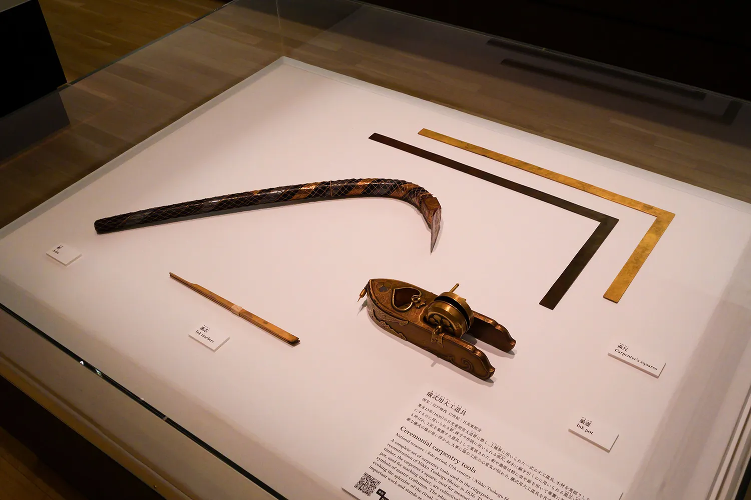 第一会場(企画展示室)に入ると、東京会場の目玉展示・日光東照宮の儀式用大工道具(国宝、17世紀、日光東照宮蔵)がお出迎え。