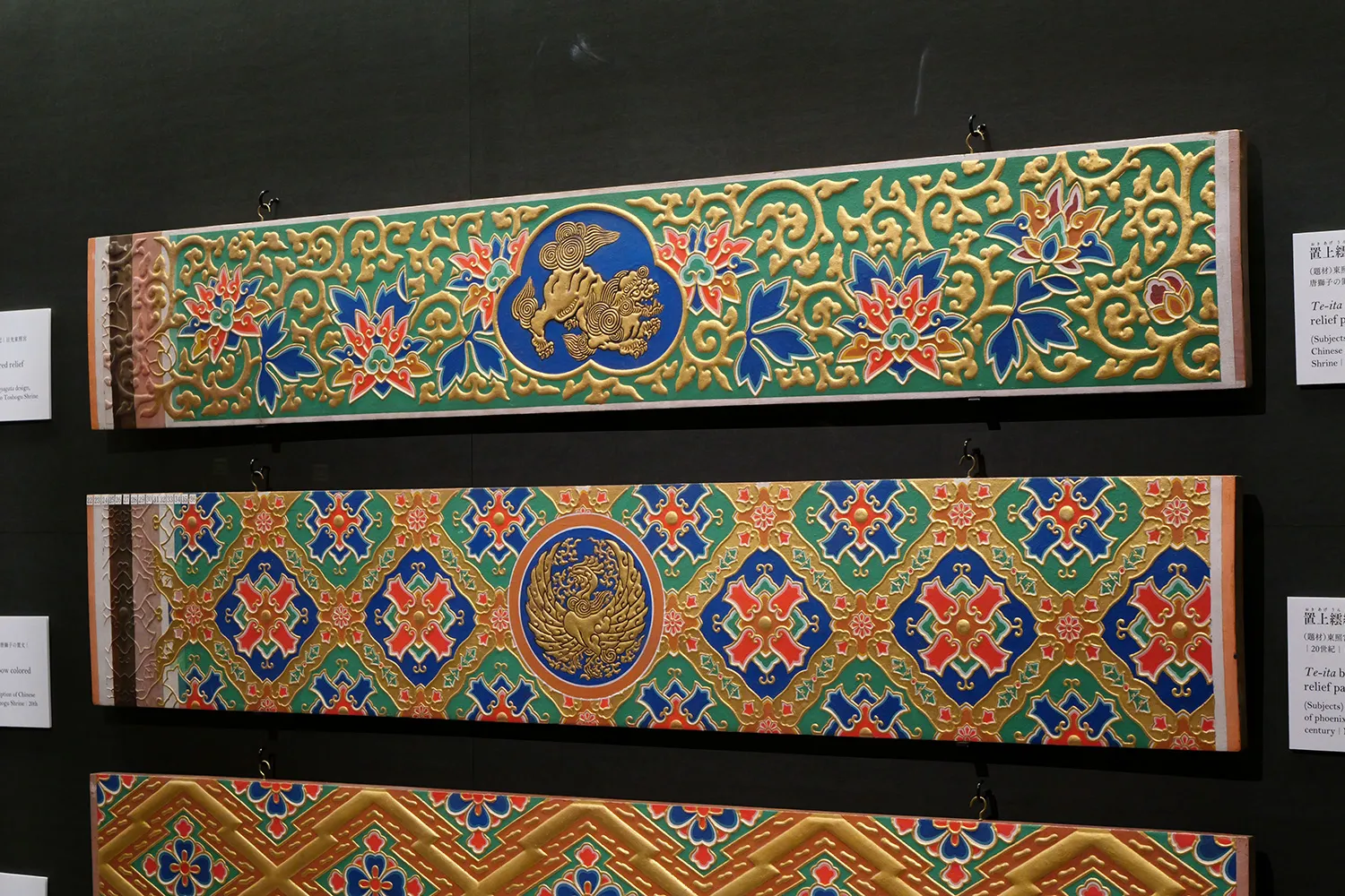本展では、伝統建築工匠の技のうち、日光の社寺を彩り、比類のない豪華さときらびやかさを際立たせている装飾技術の「彩色」と「金工」に着目し、その美しさの謎に迫ります。普段は遠目にしか見ることができない、きらびやかな建築装飾の世界と伝統技術の粋をぜひ間近でご鑑賞ください。